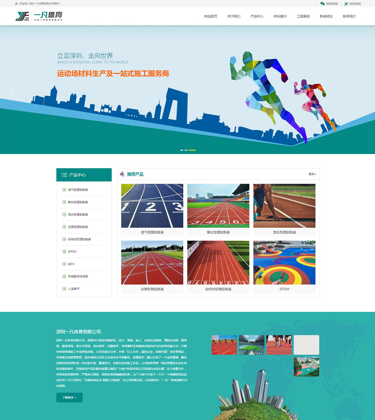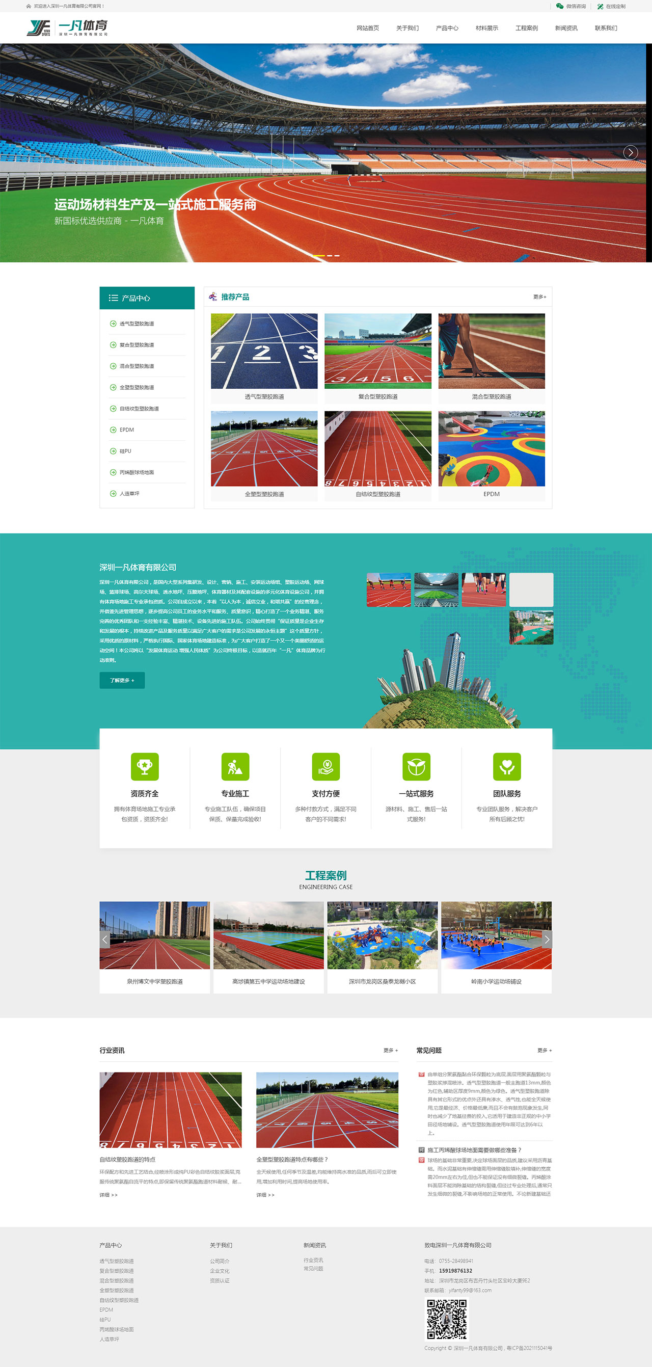 服務(wù)內(nèi)容:體育設(shè)施網(wǎng)站設(shè)計(jì)制作、H5自適應(yīng)網(wǎng)站建設(shè) 深圳一凡體育有限公司,是國(guó)內(nèi)大型系列集研發(fā)、設(shè)計(jì)、營(yíng)銷、施工、安裝運(yùn)動(dòng)場(chǎng)館、塑膠運(yùn)動(dòng)場(chǎng)、網(wǎng)球場(chǎng)、籃排球場(chǎng)、高爾夫球場(chǎng)、透水地坪、壓膜地坪、體育器材及其配套設(shè)施的多元化體育設(shè)施公司,并擁有體育場(chǎng)地施工專業(yè)承包資質(zhì)。